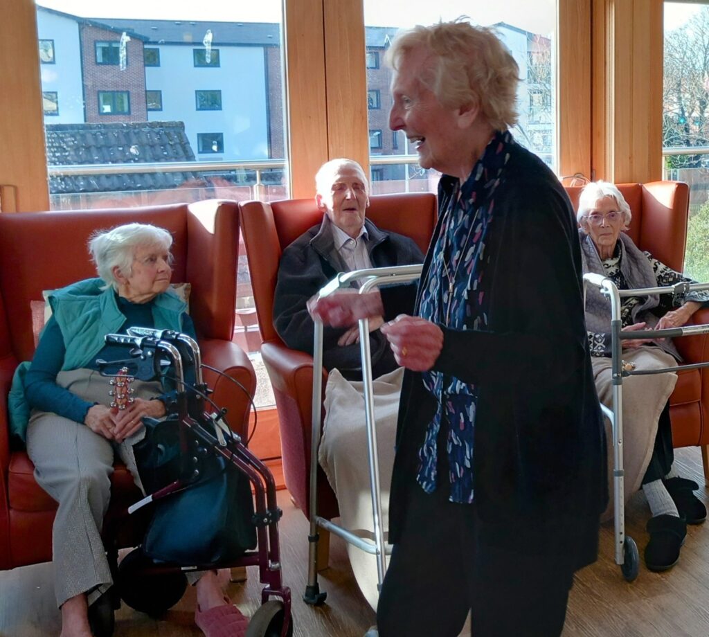 Of course, it wouldn’t be a true Mark Birch afternoon without a bit of dancing! Even those who prefer to stay seated still find themselves moving to the rhythm, and there’s always a few who can’t resist getting up for a twirl. It’s these little moments that make life at Abbeyfield Lear House feel so special – a true Residential Care Home that’s buzzing with energy and warmth.